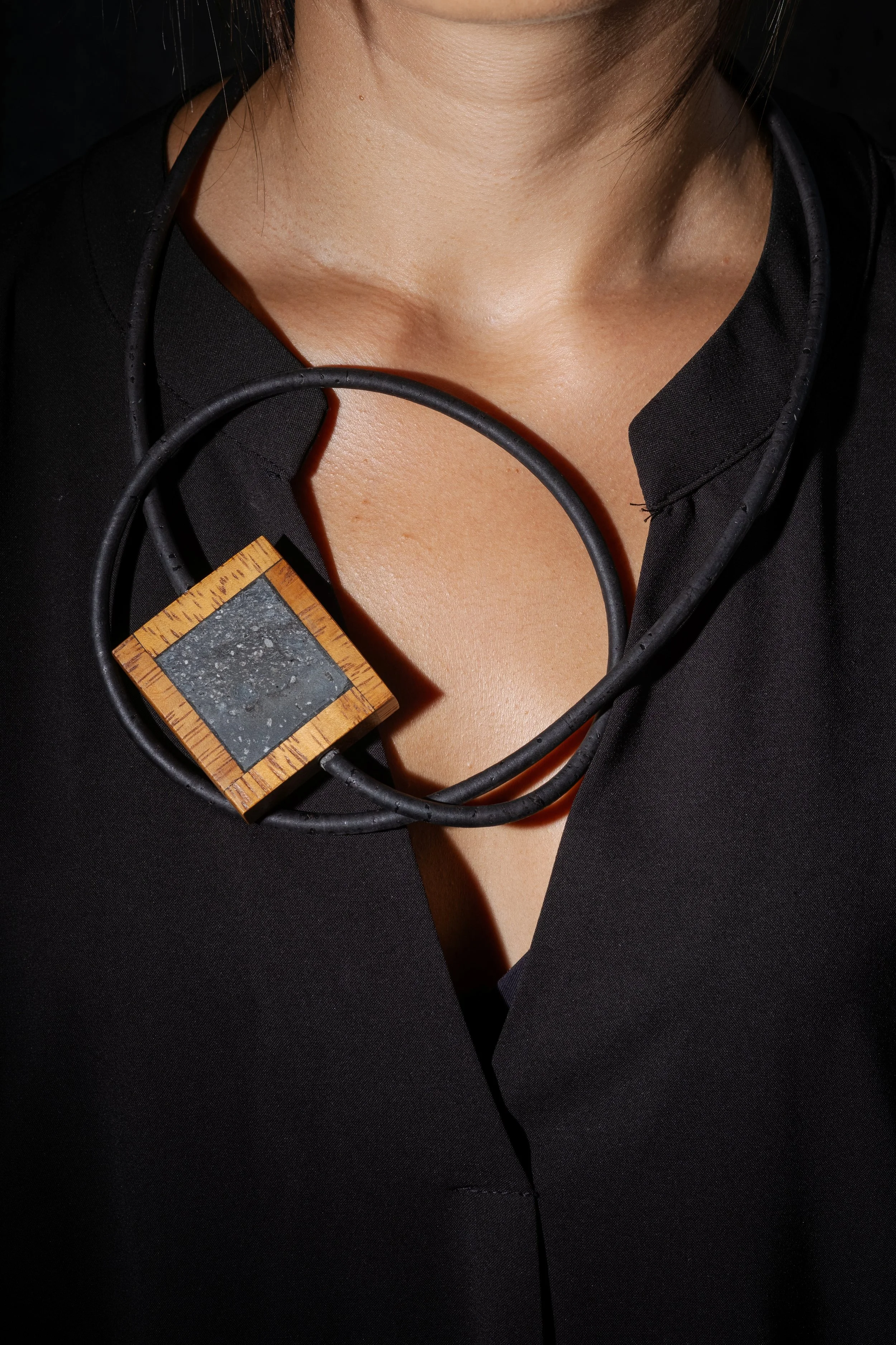 Gargantilhas em fio de cortiça, ajustáveis; fecho com botão ou íman.