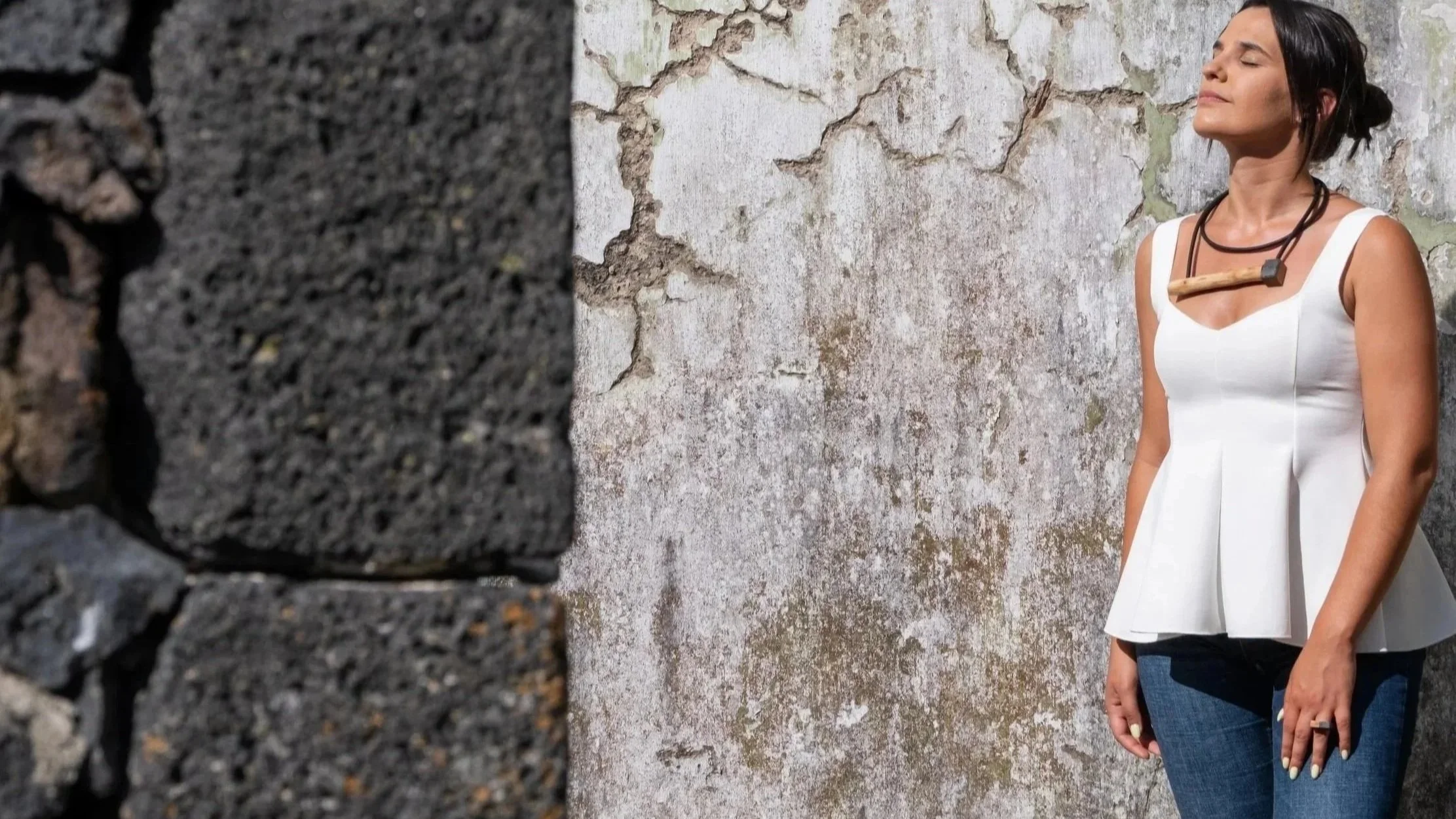 Pulseira escultórica; pulseira ajustável; pulseira entrançada; Pulseira meia cana. Madeira e ignímbrito, fio de camurça, fio cortiça.