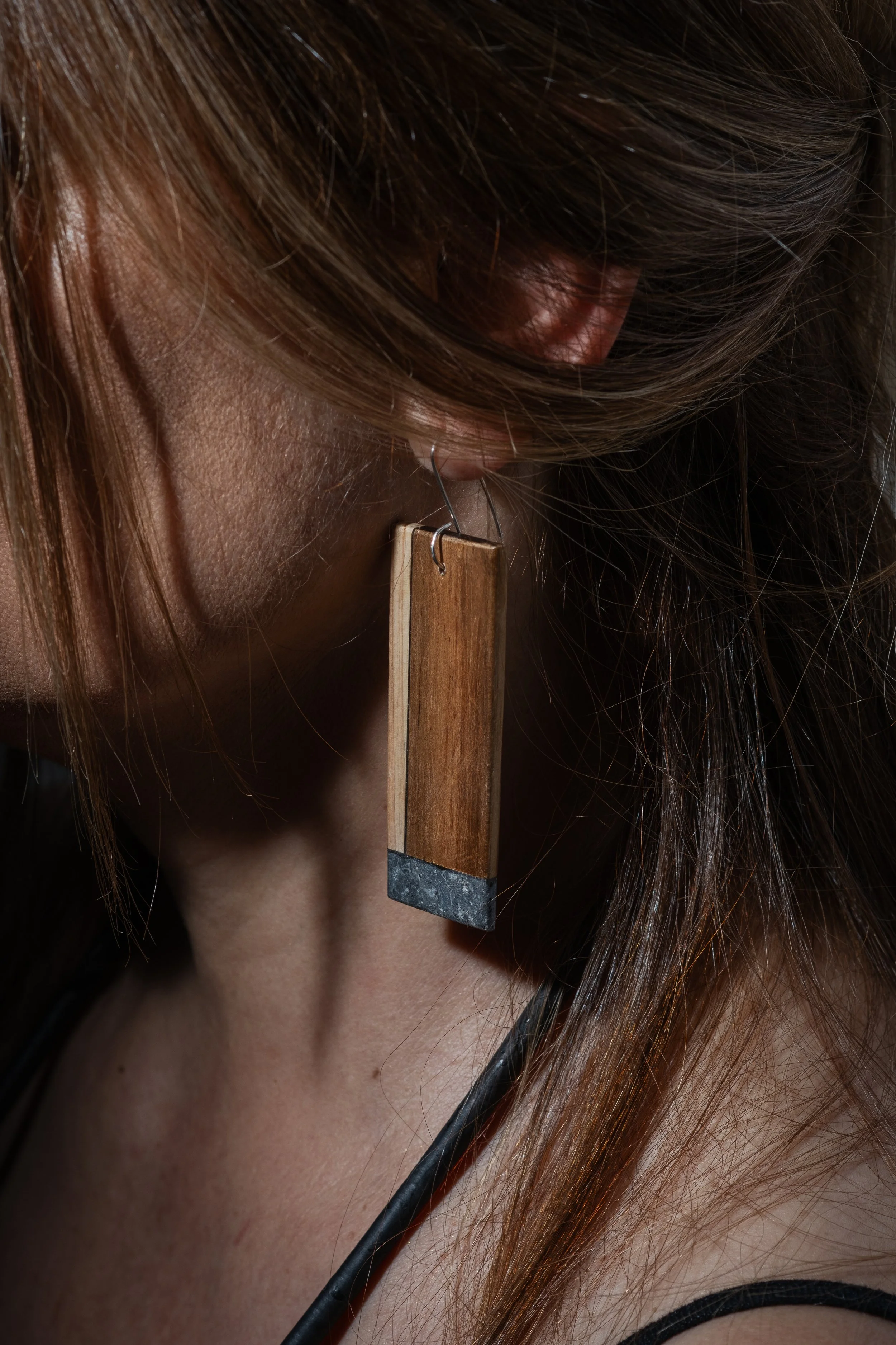 Prendedor simples; prendedor duplo; prendedor composto duas peças. Madeiras diversas e ignímbrito.